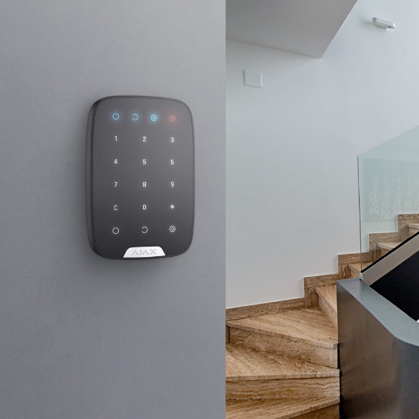 O teclado bidirecional Ajax é um teclado tátil sem fio usado para ativar/desativar o sistema de segurança Ajax. Ele é instalado no cômodo próximo à porta de entrada para proporcionar acesso rápido ao teclado.